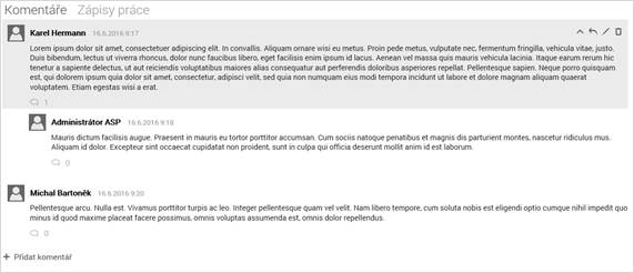Na základě přístupového oprávnění přihlášeného uživatele, je komentáře editovat, popř. mazat.