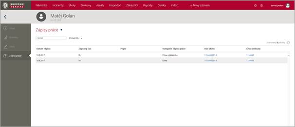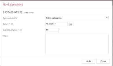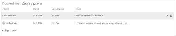 Na základě přístupového oprávnění přihlášeného uživatele, je možné zápisy práce editovat, popř. mazat.