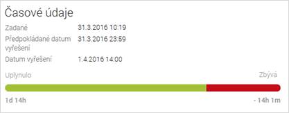 Ke každému incidentu je možné uživatelsky definovat předpokládané datum vyřešení. Na základě zadání předpokládaného data vyřešení, je v detailu incidentu graficky znázorněn uplynulý a zbývající čas do vyřešení incidentu.