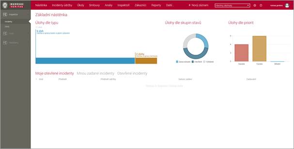 První věc, která se uživateli po přihlášení do systému zobrazí, je Nástěnka. Nástěnka je tvořena miniaplikacemi – grafy a tabulkami, které nabízejí základní přehledy o úlohách (incidentech).