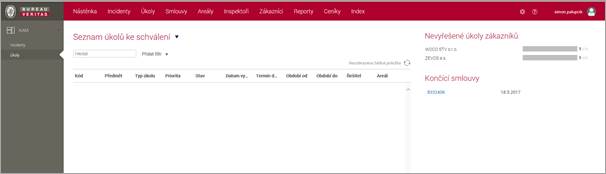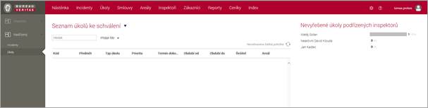 Tato nástěnka obsahuje seznam úkolů ke schválení nadřízeným inspektorů. V tomto seznamu je možné filtrovat, třídit. Na detail úkolu se prokliknete přes Kód úkolu a následně jej Nadřízený může schválit.