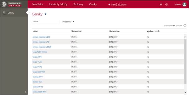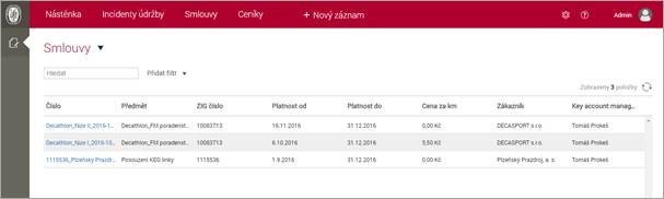Smlouvy lze v tomto okně vyhledávat, třídit nebo filtrovat.