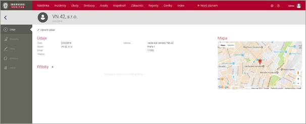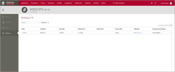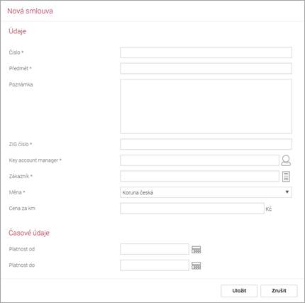 Ke každé smlouvě je možné evidovat základní údaje o smlouvě, jako jsou zákazník, předmět, platnost od, platnost do, ZIG číslo, číslo smlouvy na dokumentu. Ke každé smlouvě je nutné také z evidence osob přiřadit Key account managera.