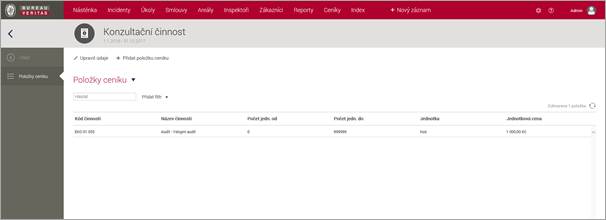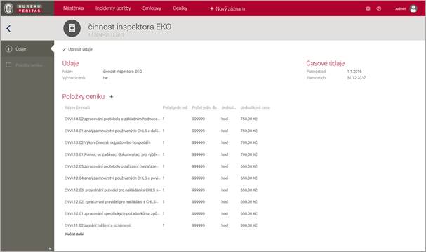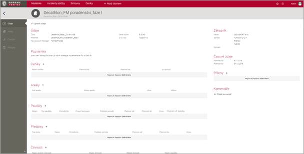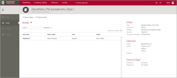 Kromě základních údajů se u smlouvy evidují Ceníky, Areály, Paušály, Předpisy a Činnosti.