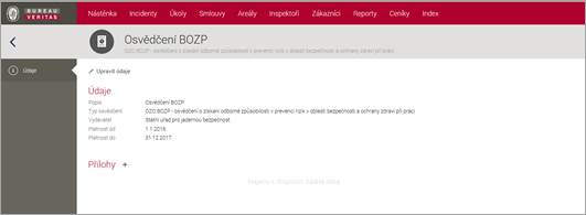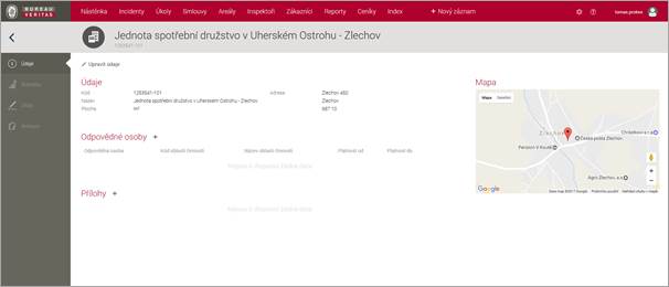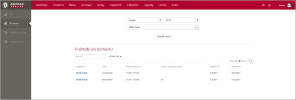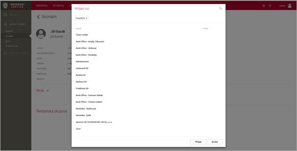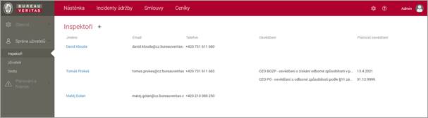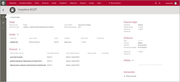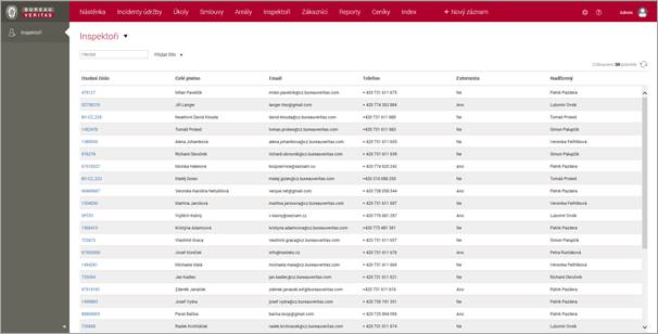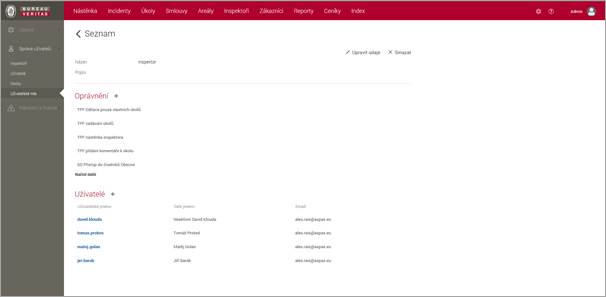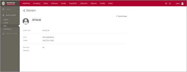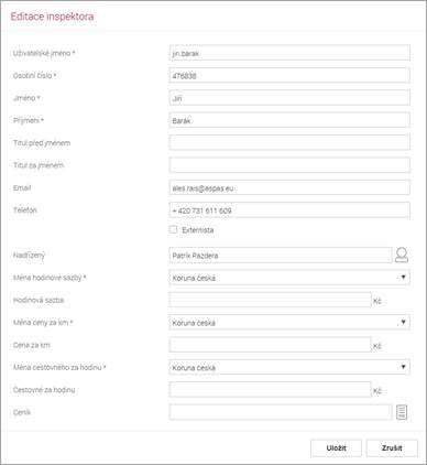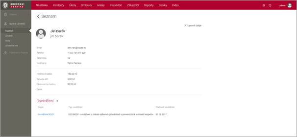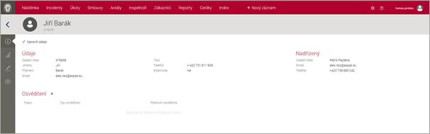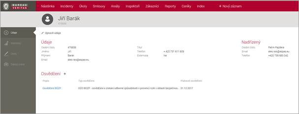 Na nástěnce inspektora jsou také základní údaje o inspektorovi a jeho nadřízeném.
