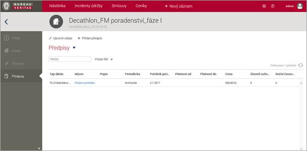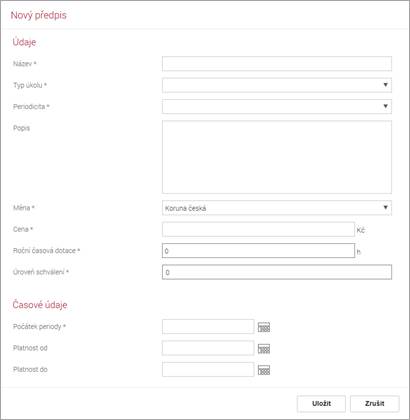 Výchozí periodicita uvedená u typu úkolu slouží pro předvyplnění periodicity předepsaného úkolu u smlouvy.