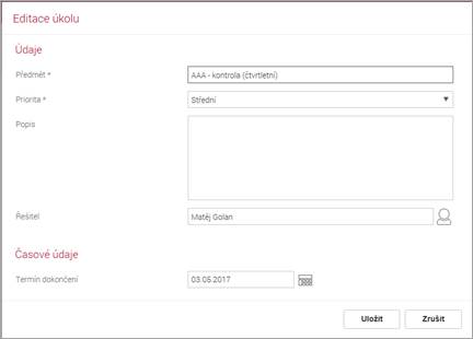 V detailu typu úkolu můžete přes tlačítko Upravit údaje provést změnu údajů příslušného typu úkolu.