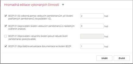 okně vyberete příslušné činnosti a dialog potvrdíte tlačítkem Přidat.