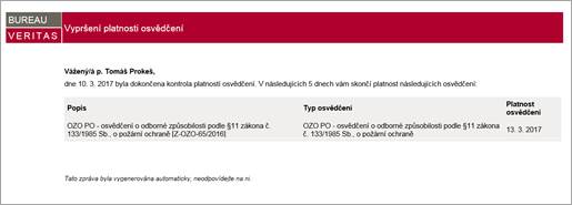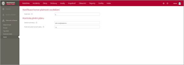V tomto okně je možné nastavit počet dnů určující délku období, ve kterém se mají hledat končící osvědčení a na základě toho odeslat notifikační email inspektorovi.