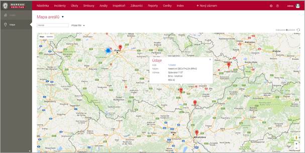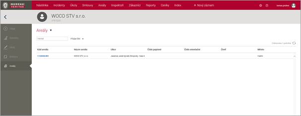 Pokud uživatel systému není Inspektor, Nadřízený či KAM je přesměrování přímo na okno se seznamem smluv nebo areálů podle toho jaké má oprávnění k vybraným evidencím.
