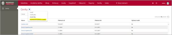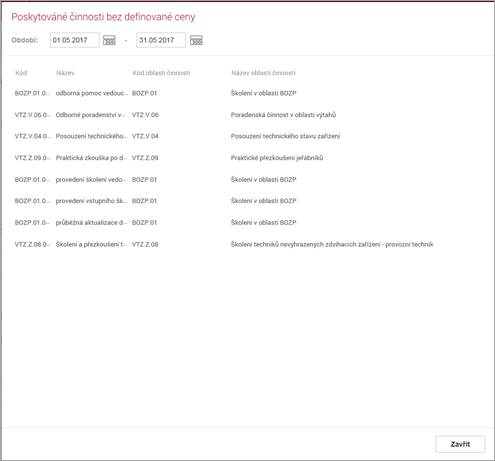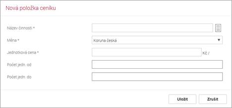 Pro připojení ceníků, areálů, činností a vytvoření nových