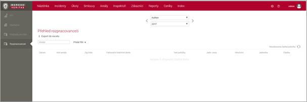 Dále je zde agregovaný přehled nevyřešených úkolů jednotlivých podřízených inspektorů s počtem nevyřešených úkolů. Kliknutím na jméno inspektora nebo na počet úkolů se prokliknete na seznam nevyřešených úkolů příslušného inspektora.