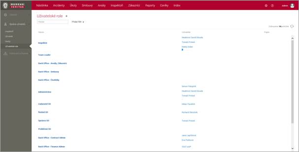 v horní liště aplikace a dále na záložku Správa uživatelů – Uživatelské role.
