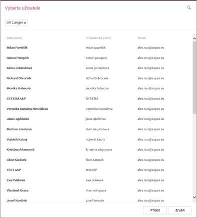 uživatele a dialog potvrdíte tlačítkem Přidat. V dialogovém okně je