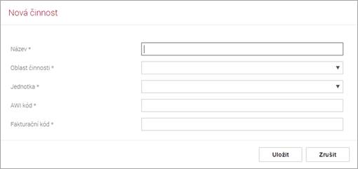 činnosti, vyberete z nabízených Jednotek, vyplníte AWI kód a Fakturační