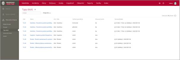Okno Typy úkolů obsahuje evidenci typů úkolů, které slouží ke kategorizaci úkolů.