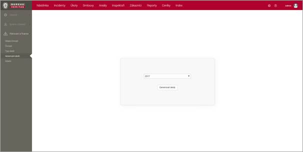 V okně vyberete příslušný rok (nabízí se vždy předchozí, aktuální a následující rok) a klepnete na tlačítko Generovat úkoly. Tím se vygenerují nové úkoly dle předpisů smlouvy nebo se přegenerují již existující úkoly ve stavu Otevřený.